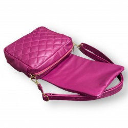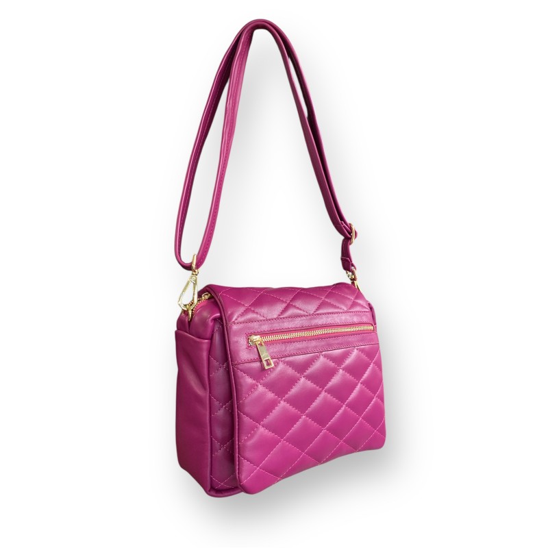 Ts257 torebka skórzana noszona na regulowanym skórzanym pasku. Zapinana jest na zamek błyskawiczny plus dodatkowo klapką. Na klapie dodatkowa kieszonka zapinana na suwak. W środku posiada kieszeń zapinaną na zamek błyskwiczny oraz futerał na telefon komórkowy. Kolor okuć złoty.