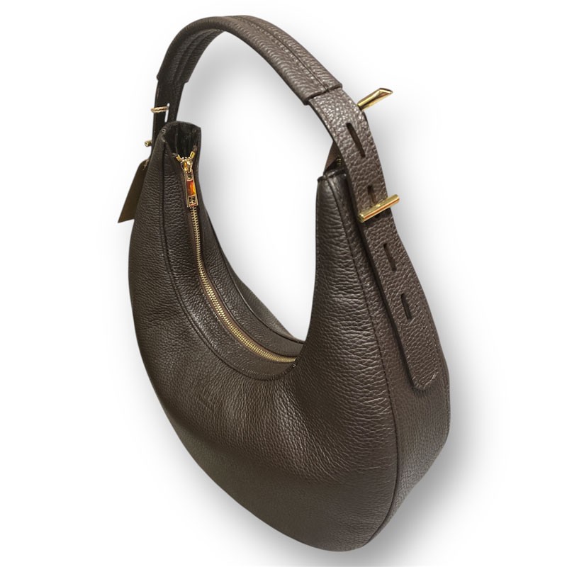 Td-258; torebka typu banan. Noszona na płaskiej regulowanej rączce. Zapinana na zamek błyskawiczny.. Wewnątrz torebki znajduje się kieszonka zapinana na suwak, kieszonka na lamówkę oraz futerał na telefon. Wszystkie wyroby naszej firmy wyprodukowane są w Polsce.