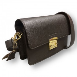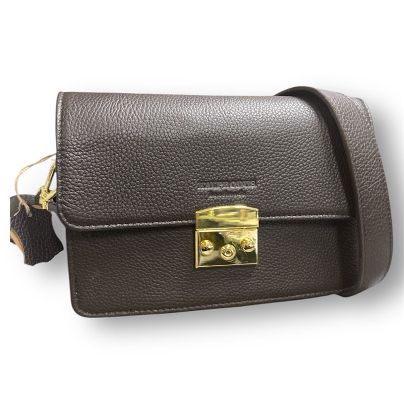 Torebka skórzana Ts-254; średniej wielkości torebka damska. Zapinana klapką z ozdobnym zamkiem. Wewnątrz torebki znajdują się dwie kieszonki, jedna otwarta, druga zapinana na suwak. Torebkę nosimy na szerokim skórzanym, regulowanym pasku. Wszystkie wyroby naszej firmy wyprodukowane są w Polsce.